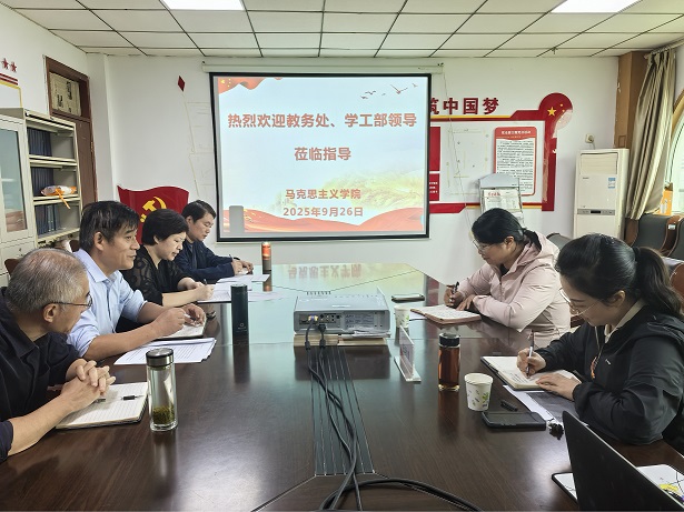为协同推进“大思政课”建设,加强部门间协同合作,共同推动学校思想政治教育工作高质量发展,9月26日上午,教务处副处长夏晶晶、学工部副部长张聪慧一行前往马克思主义学院开展专题调研。调研座谈会在英才校区文治楼615会议室举行,马克思主义学院领导班子成员、各教研室主任及科级干部共同参与座谈。